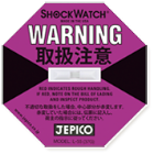 当社ではショックウォッチのラベルタイプを3種類利用しています。 製品の重要度に応じて、一番売値が高く、重要な商品に黄色のラベルを貼る…というようにしています。基本的には売値が10万円以上の商品に貼り付けるようにしています。また、ティルトウォッチも併用しています。現場では、検品の際にどちらか一方が赤くなっていたら確認する、という作業をしています。